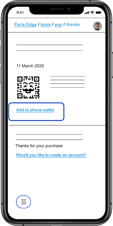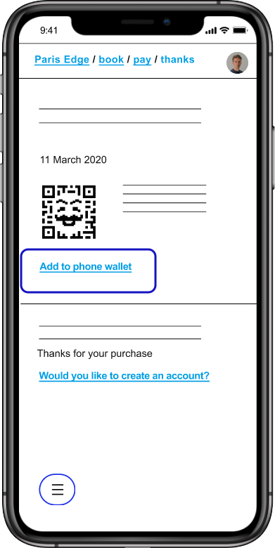 We introduced “Add to phone wallet” functionality, allowing QR ticket access without running Space 23 (at this point still called ‘Paris Edge’).